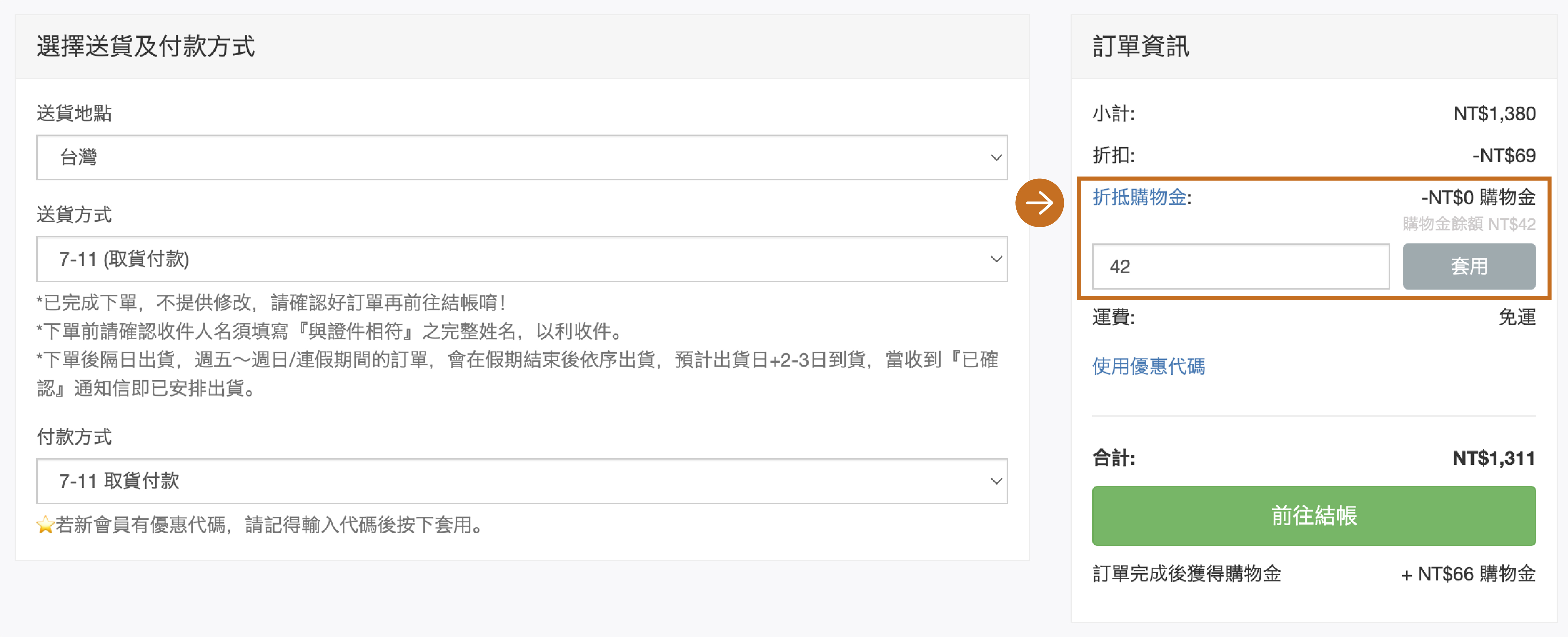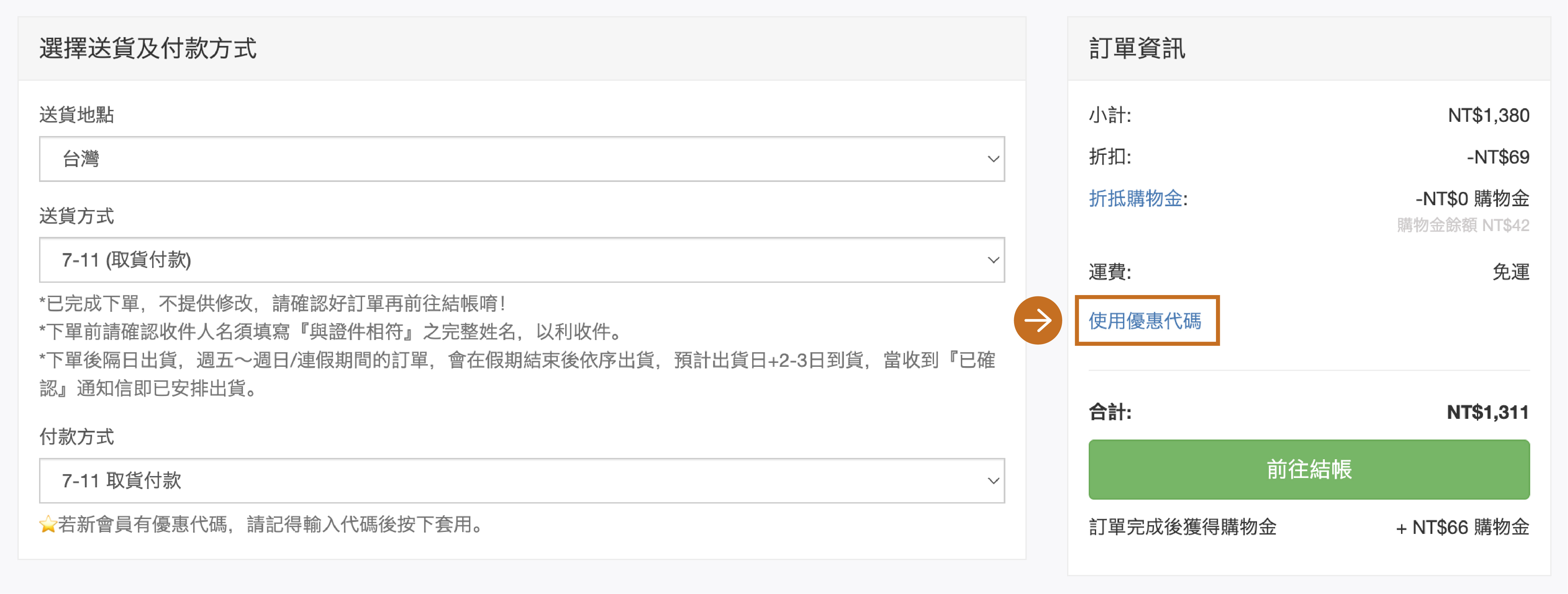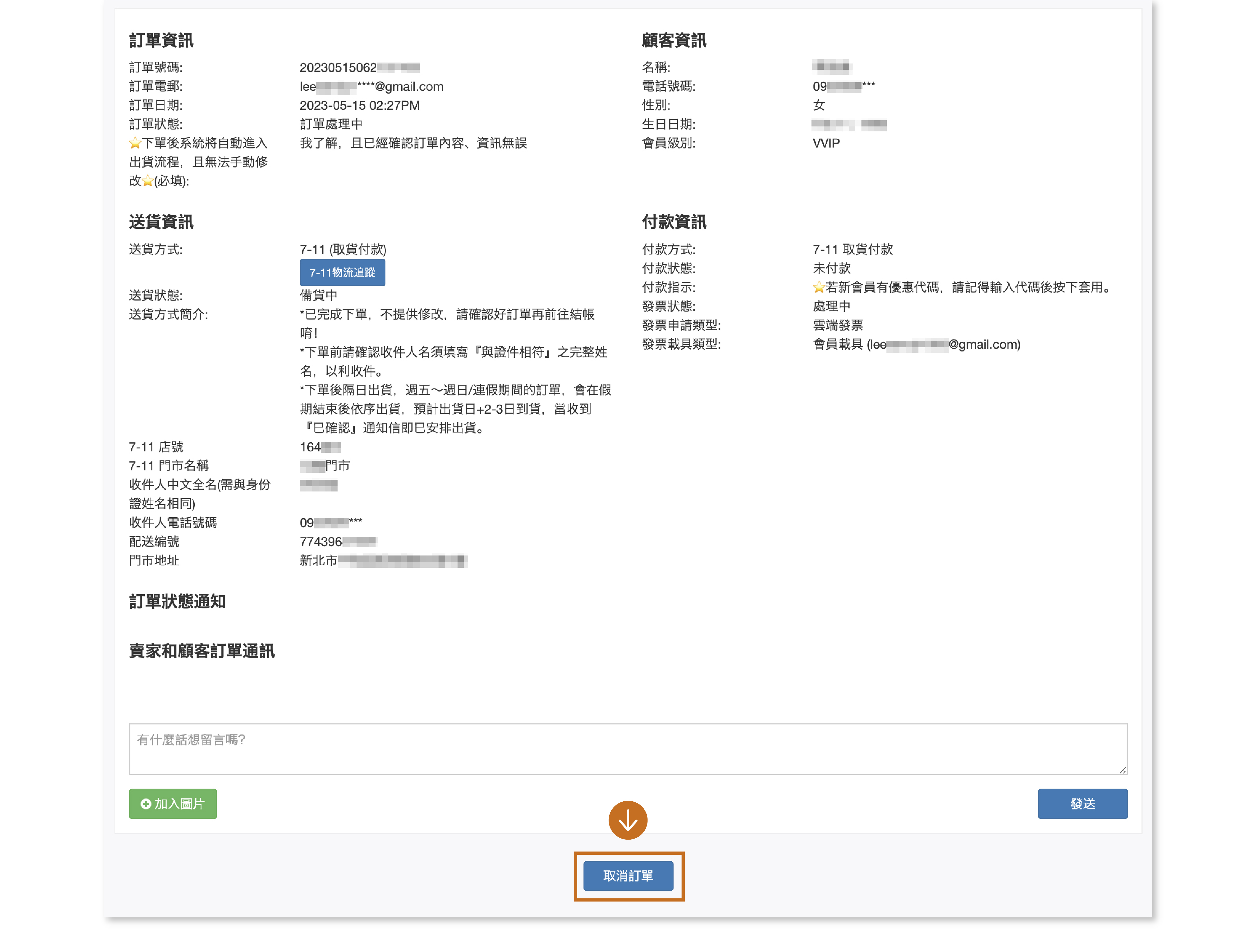 ●訂單狀態:處理中