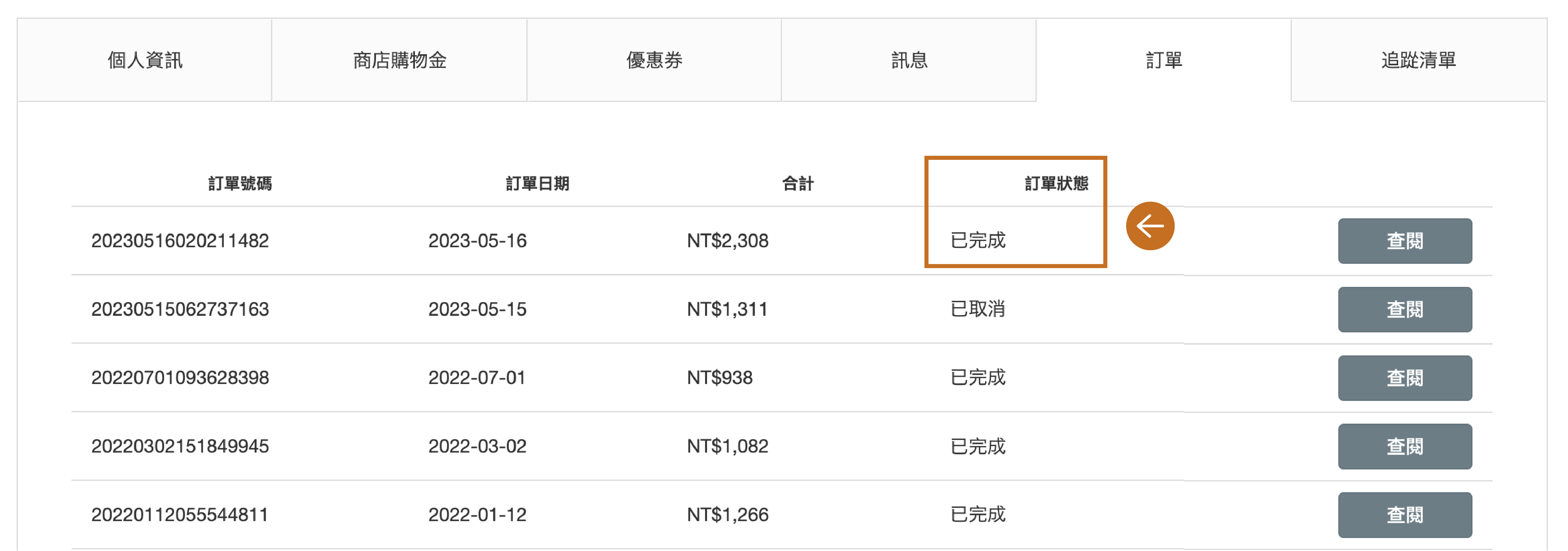若訂單符合以下狀態,可自行取消訂單。